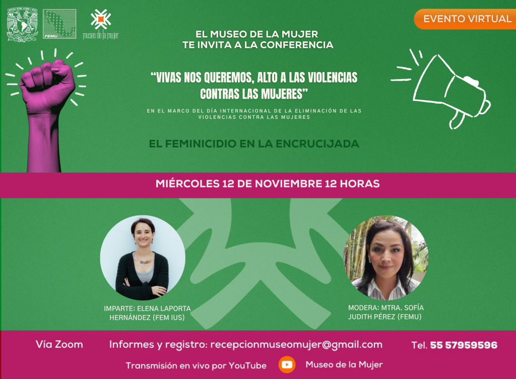 El 12 de noviembre de 2025 Elena Laporta Hernández impartió la conferencia «El feminicidio en la encrucijada» invitada por el Museo de la Mujer México.