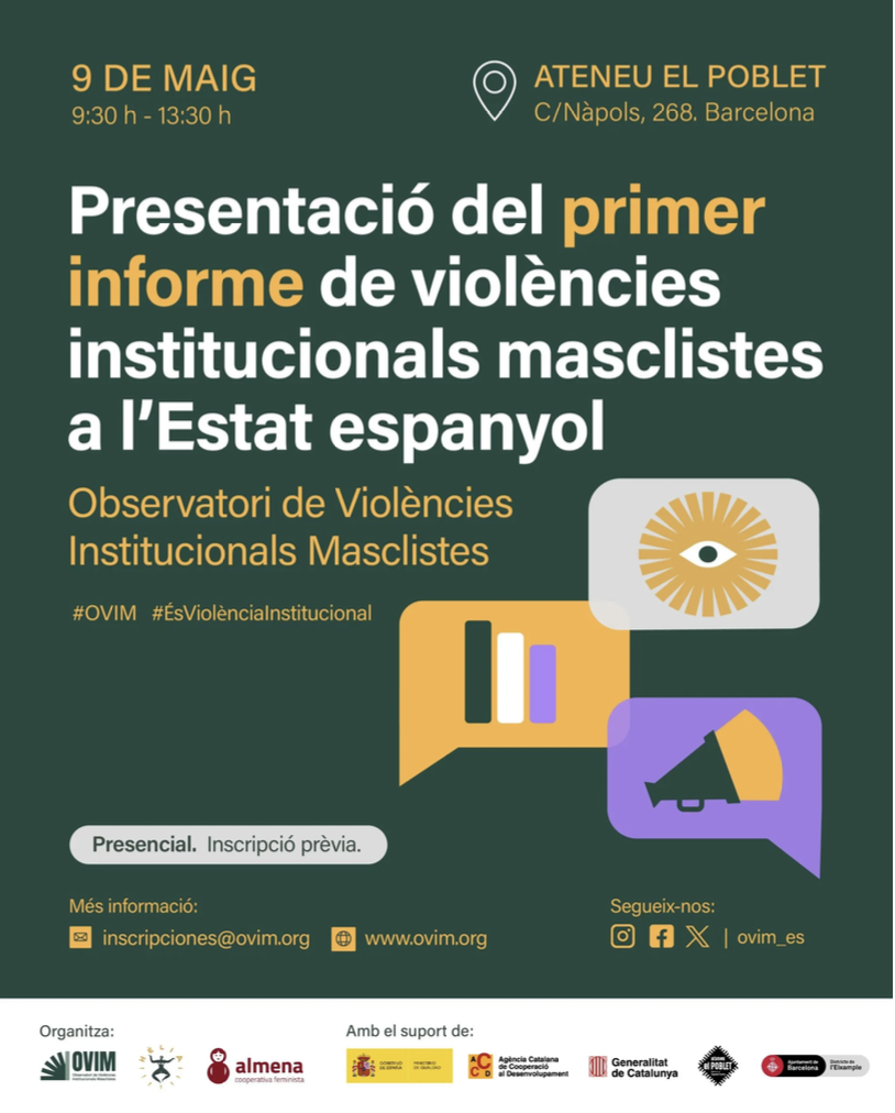 El 9 de mayo de 2025 el Observatorio de Violencias Institucionales Machistas (OVIM) presenta el presenta el primer Informe sobre violencias institucionales machistas en el Estado español, un trabajo pionero que analiza datos tras más de un año de recopilación de casos anónimos a través de un canal de denuncia colectiva.